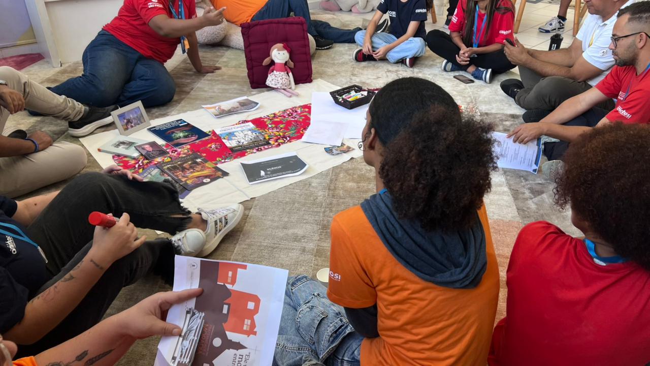 Na Sala 03, os grupos realizaram uma releitura do cartaz da Campanha da Fraternidade 2026, estabelecendo conexões entre o tema e a realidade vivida nos projetos. A atividade possibilitou ressignificar a proposta da campanha a partir das experiências.